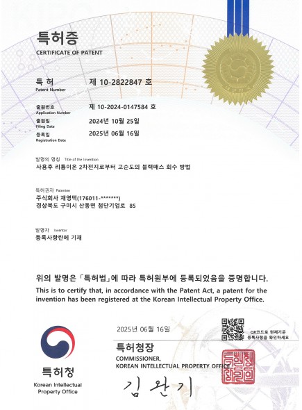 사용후 리튬이온 2차전지로부터 고순도의 블랙매스 회수 방법